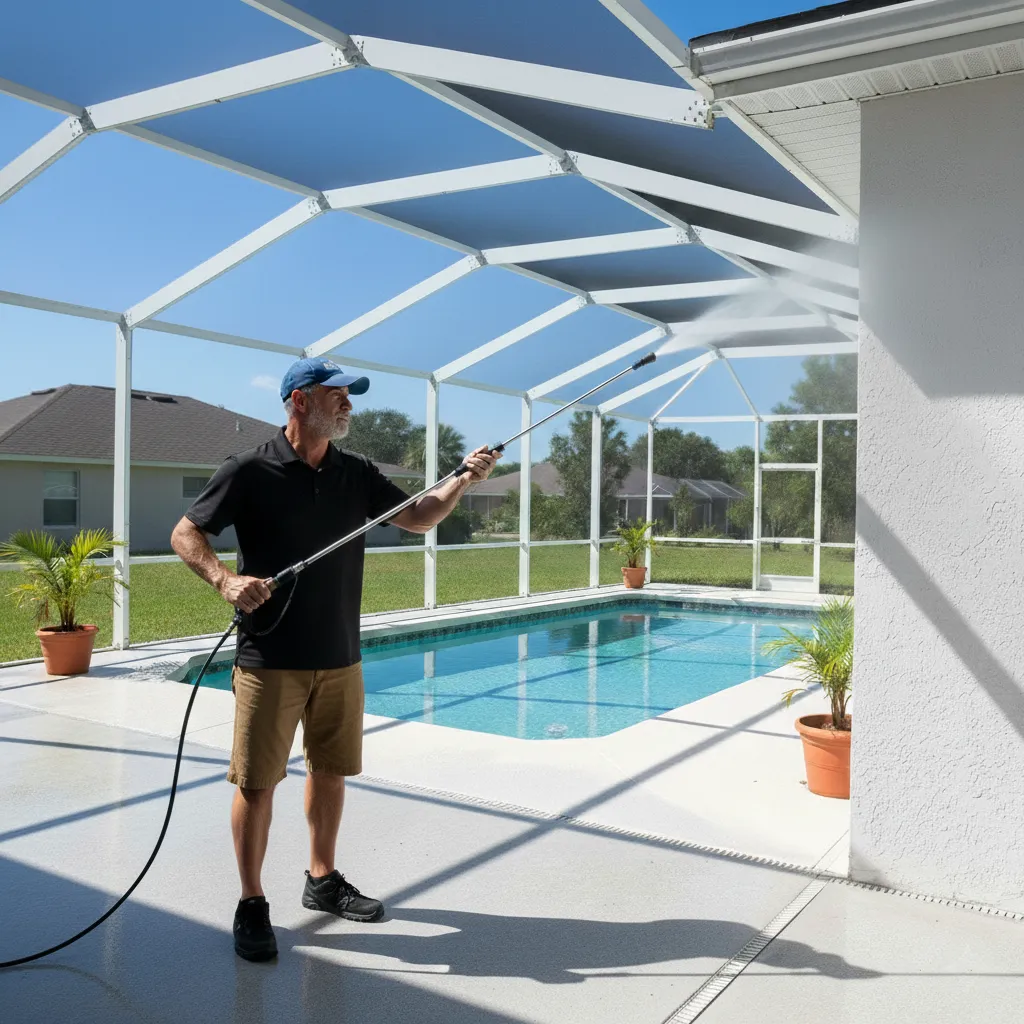 Gentle, neighbor-friendly cleaning for lanais, pool cages, and outdoor living spaces. Get a Free Quote Today!